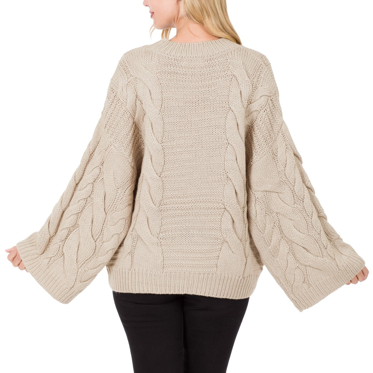 Oversized Bell Sleeve Cable Knit Sweater Ashanu